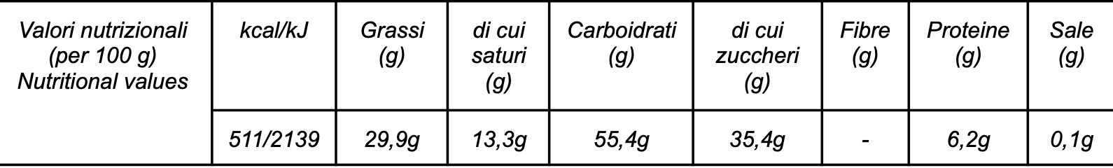 Allergeni: Può contenere tracce di frutta a guscio.