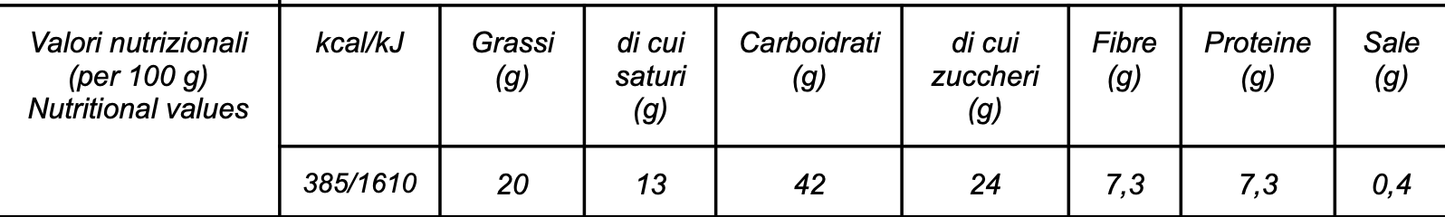 Allergeni: Può contenere arachidi, pistacchi, mandorle, nocciole, soia, latte,