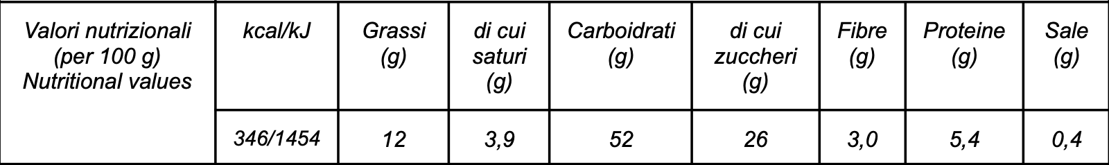 Allergeni: Può contenere arachidi, pistacchi, mandorle, nocciole, soia, latte,