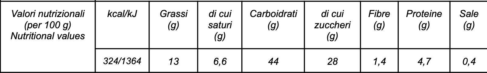 Allergeni: Può contenere sesamo, arachidi, pistacchi, nocciole, senape.