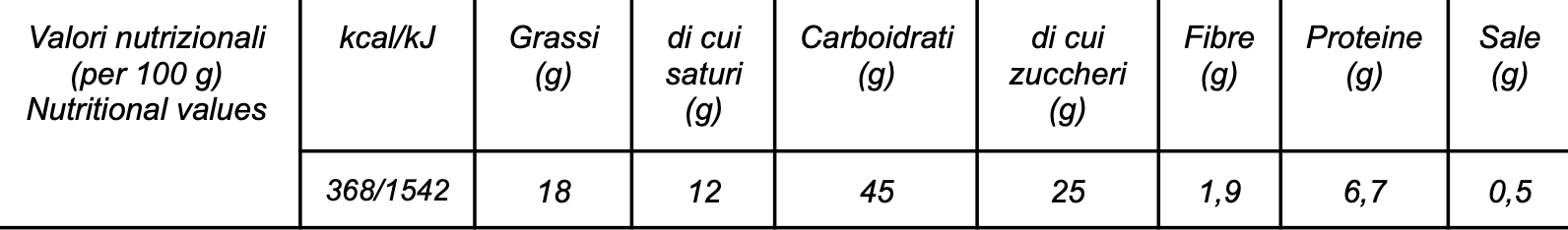 Allergeni: Può contenere sesamo, arachidi, pistacchi, mandorle, nocciole,