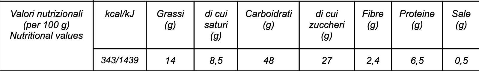 Allergeni: Può contenere sesamo, arachidi, pistacchi, mandorle, nocciole,